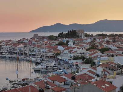 Round to Poros, the always busy sailing island in the Saronic and a favourite call from my early sailing days in the 1970's, to pick up Cocky. Across the upper Cyclades to Lesbos (of course). Up to the wonderfully quiet islands of Limnos (dawn visits by deer) and Samothraki (long walk from the hill town) were we waited a week hoping the F6 would stop blowing from Alexandropolos. It did't - so off to Thassos which we loved so much we circumnavigated it twice, second time with Kate and Joshua. A visit to the vast Roman city ruins of Phillippi on the mainland, across to Stavros to pick up Jeff and round Mount Athos and the three fingers of Khalkidhiki to Thessaloniki.