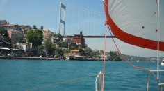 May was relatively cool with misty mornings for our trip back westwards towards Istanbul. Most memorable was the families of dolphins who trip eastwards in spring. We logged a daily dolpin count though at one stage we lost count at over a hundred dolphins, mostly travelling in groups of 10-20. We enjoyed walks in lush green hillsides, central to Turkey's tea and hazelnut production (yes, it's 75% of the world's production) and large harbours almost entirely to ourselves. In a month of sailing we saw only one other cruising yacht. Local markets provided the best strawberries EVER and, painfully, tethered donkeys for sale. We also enjoyed the cows lazing around sheltered corners of the harbours or idling along the beaches, though a sea snake worried us. Alcohol was also a problem: you had to train your eyes to look upward to unmarked bars theoretically offering no temptation to the locals. Amasra is a classic beauty: it's two-sided harbours with a central defendable headland makes it perfect for ancients (including us!). Daughter Kate joined us for a glorious fourth transit of the Bosphorus but our return to the Greek Mediterranean at Limnos made us jump for joy with the pure blue seas, no jellyfish, and simple joy.