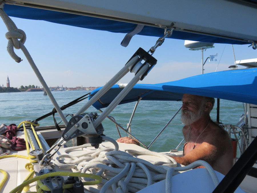 Antifouling was menaced by huge piles of fluf from surrounding trees but we eventually motored proudly down the river at Monfalcone to the sea. Clouds of smoke from the saloon and a dead engine took the smiles away: back to the boatyard for a new engine! N Italy was a tad disappointing, expensive, unfriendly and riven with fishing nets. Highlights were sailing the Venice lagoon (of course), Ravenna, Rimini and Ancona. Med life started from the Vieste peninsular to the toe of Italy at Ortranto where we crossed to Corfu and a week with Rob sailing round Zante. A quick sprint to Olympia then round the bottom of the Peloponese: its famous wind moving us at over 10 knots, twice normal speed, to Porto Heli to overwinter Scube.